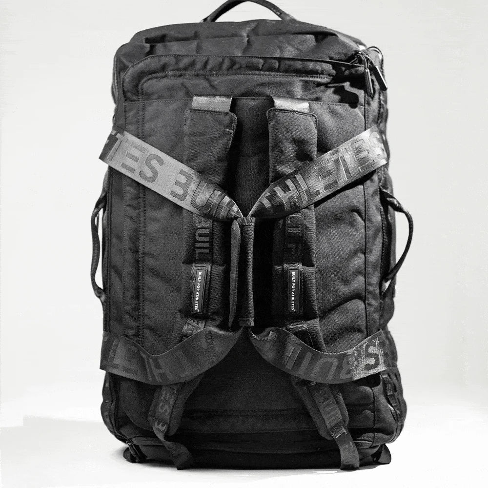 Passt: 2 x Paar Schuhe, 8 x Outfits, Necessaire, 17'' Laptop, Hebegürtel, großes Handtuch, 2 x Mahlzeit, Zubereitungsboxen, Getränkeflasche, Proteinshaker, Waschbeutel, Handgelenkbandagen, Knieschützer, Springseil. Imbisse