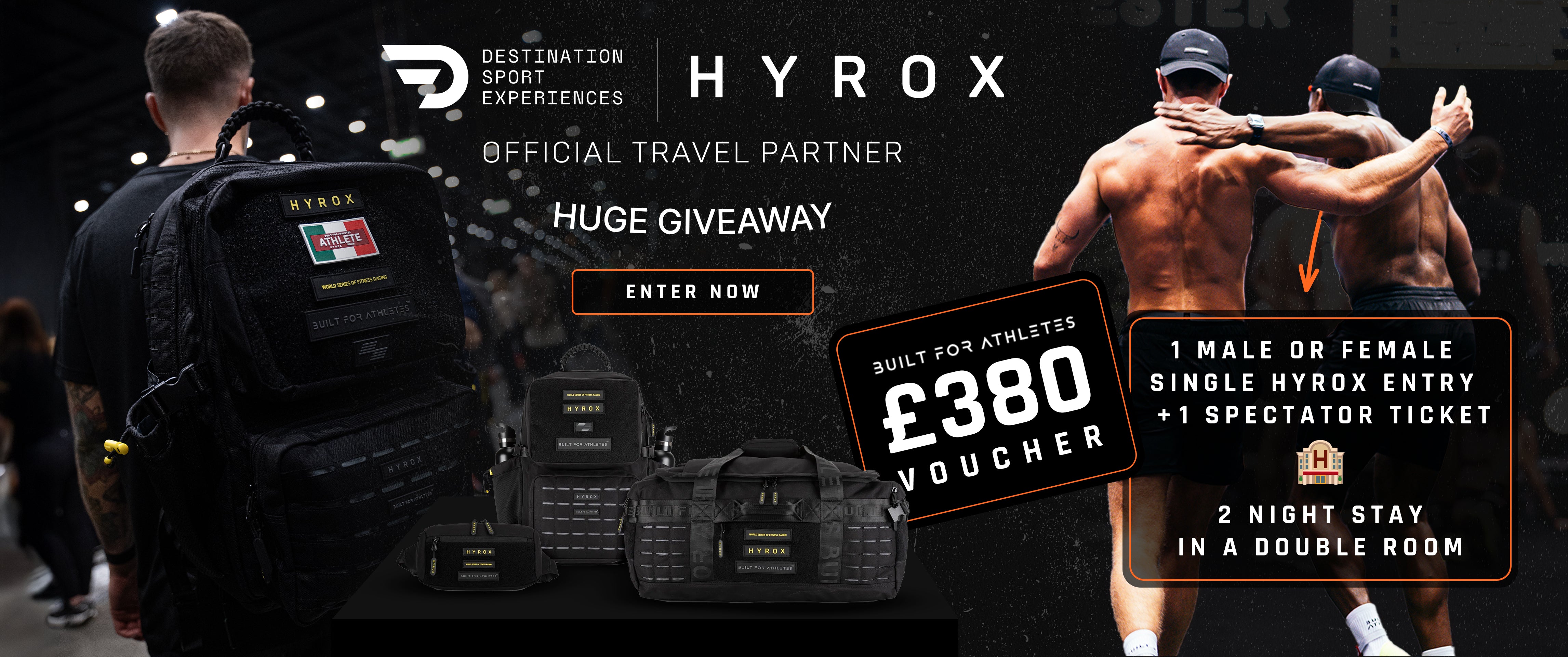 Enjoy a stress-free HYROX experience with a FREE race ticket and FREE accommodation from HYROX Tours by DSE, as well as all the luggage you need with the Built For Athletes x HYROX collection.